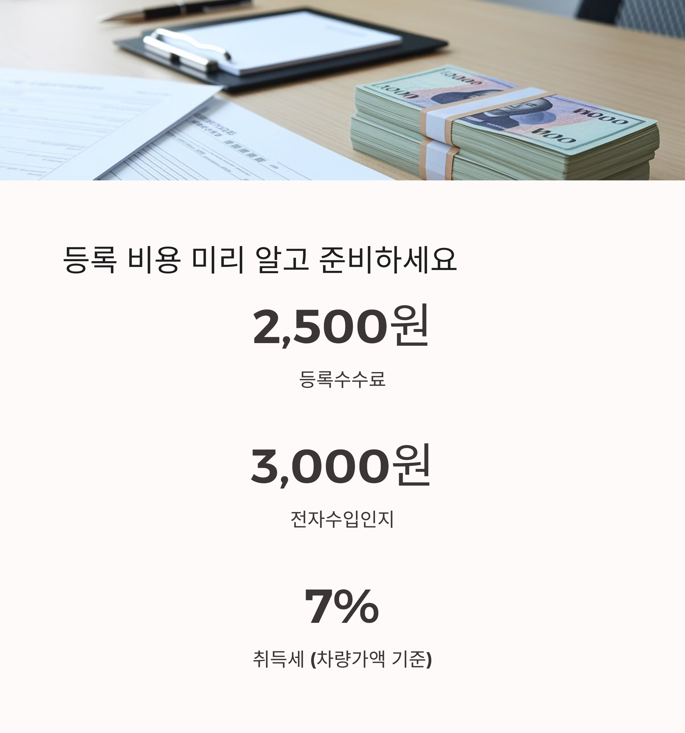 | 취득세 납부 | 차량가 기준 약 7% | 차량가액의 7% 전후 |