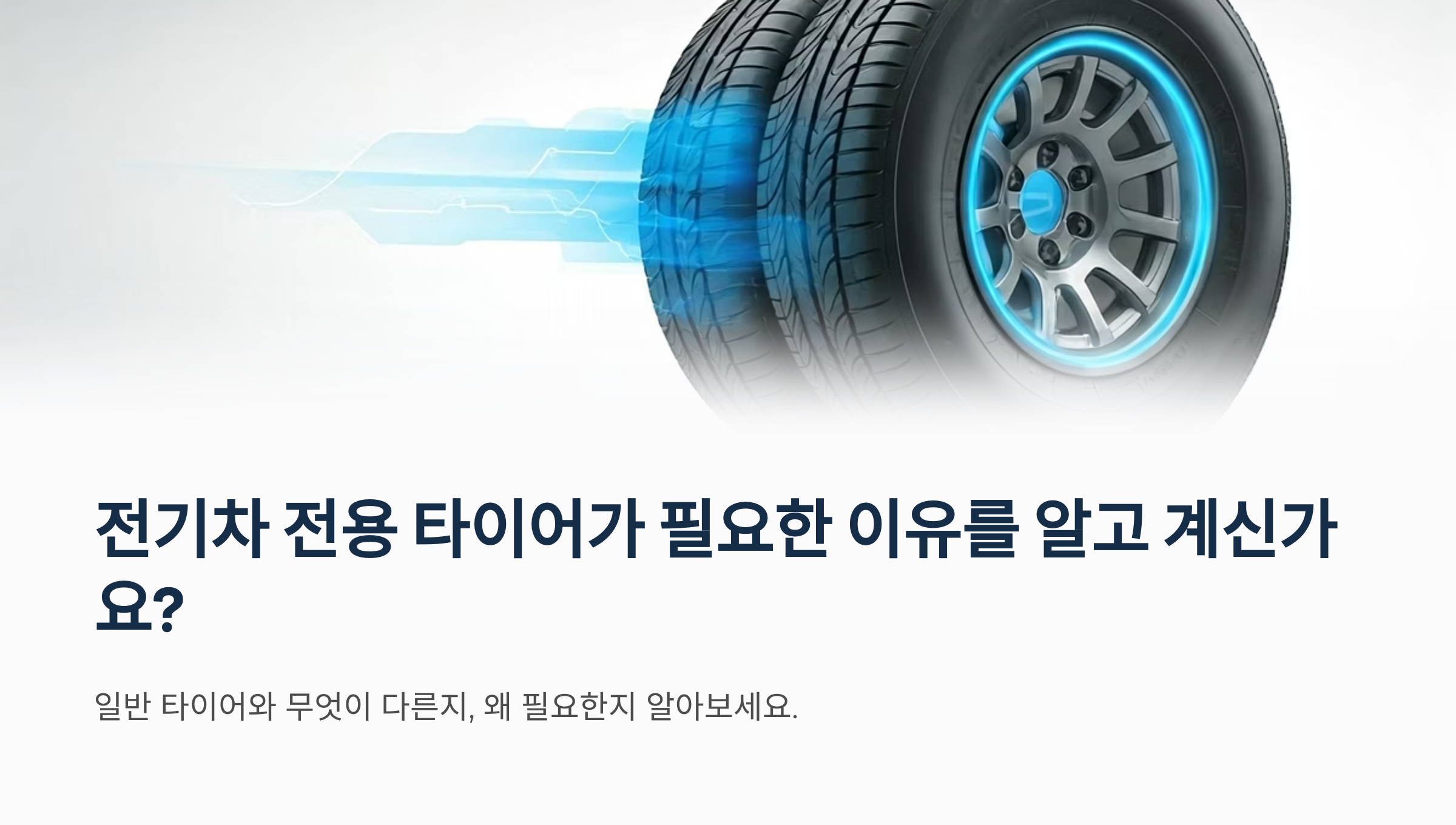 안녕하세요, 오늘은 전기차 전용 타이어의 필요성과 그 차별화된 이점에 대해 알아보겠습니다. 전기차가 점점 대중화되면서 관련 기술도 빠르게 발전하고 있는데요, 타이어도 예외는 아닙니다. 함께 알아보시죠!