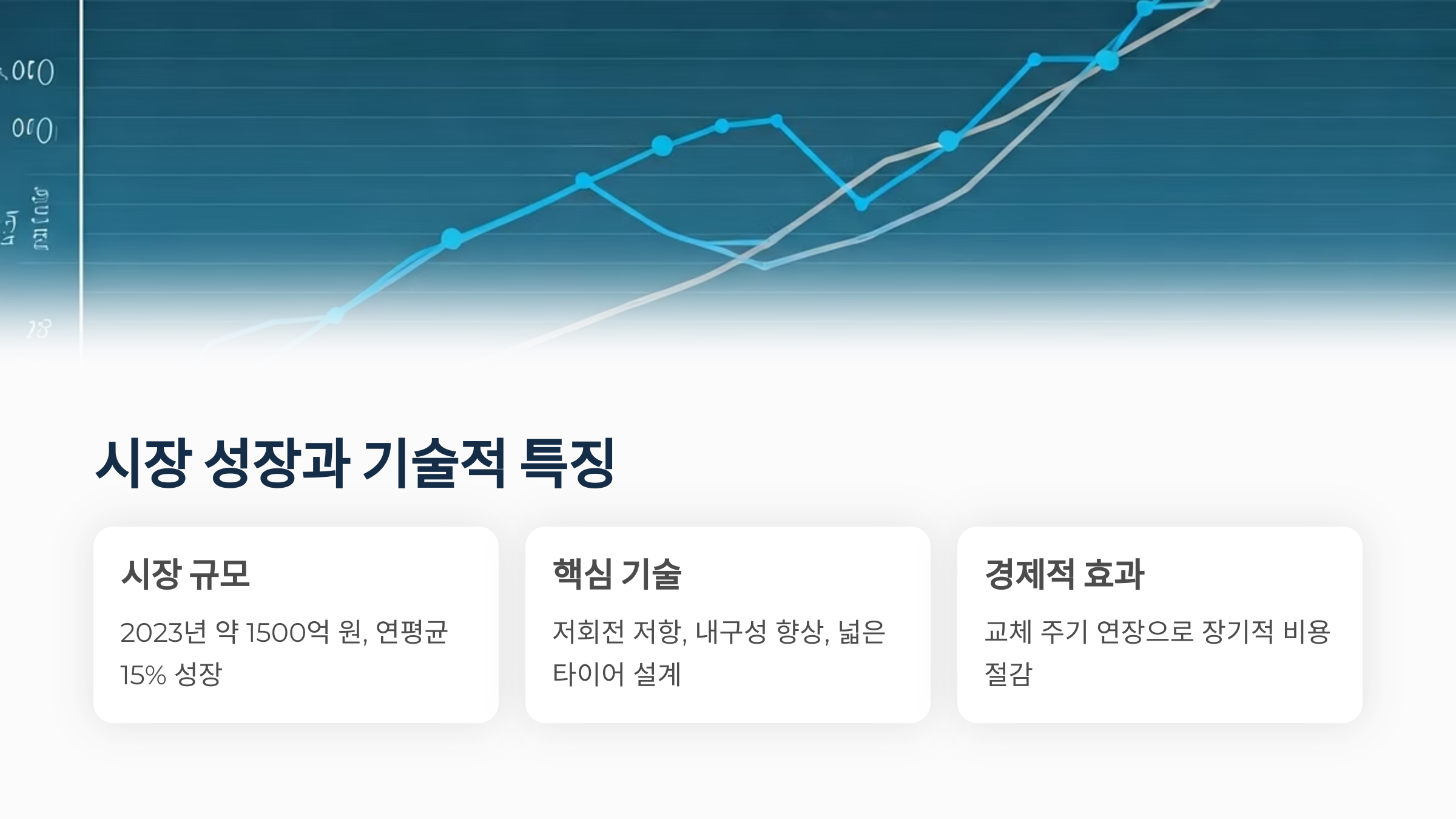 글로벌 전기차 타이어 시장은 2023년 약 1500억 원 규모로 성장했으며, 연평균 15% 이상의 성장률을 보이고 있습니다. 전기차의 충전 인프라 확장과 수요 증가로 인해 전용 타이어의 필요성이 더욱 부각되고 있습니다.