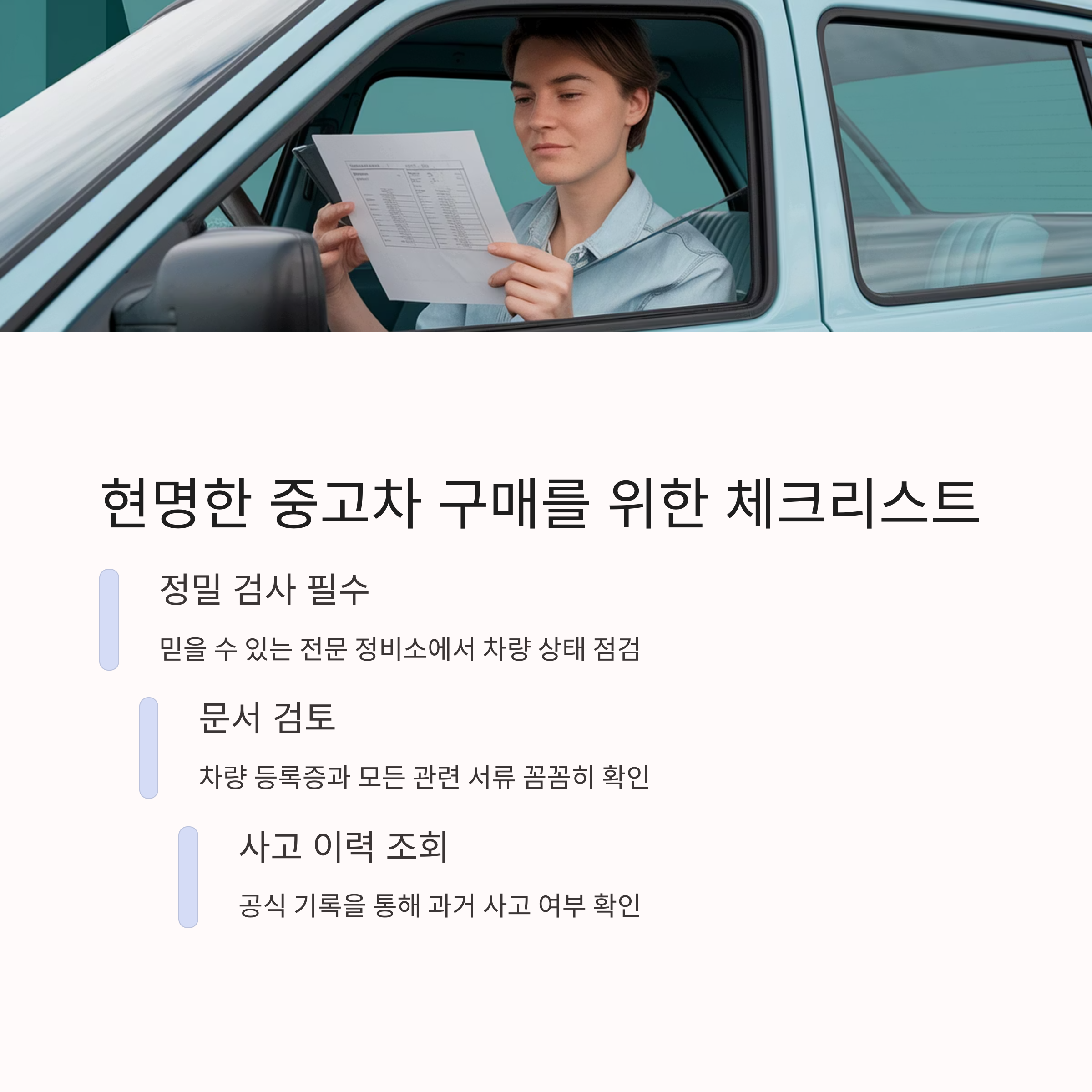 3. 차량 등록증, 정비 내역 확인은 필수입니다.