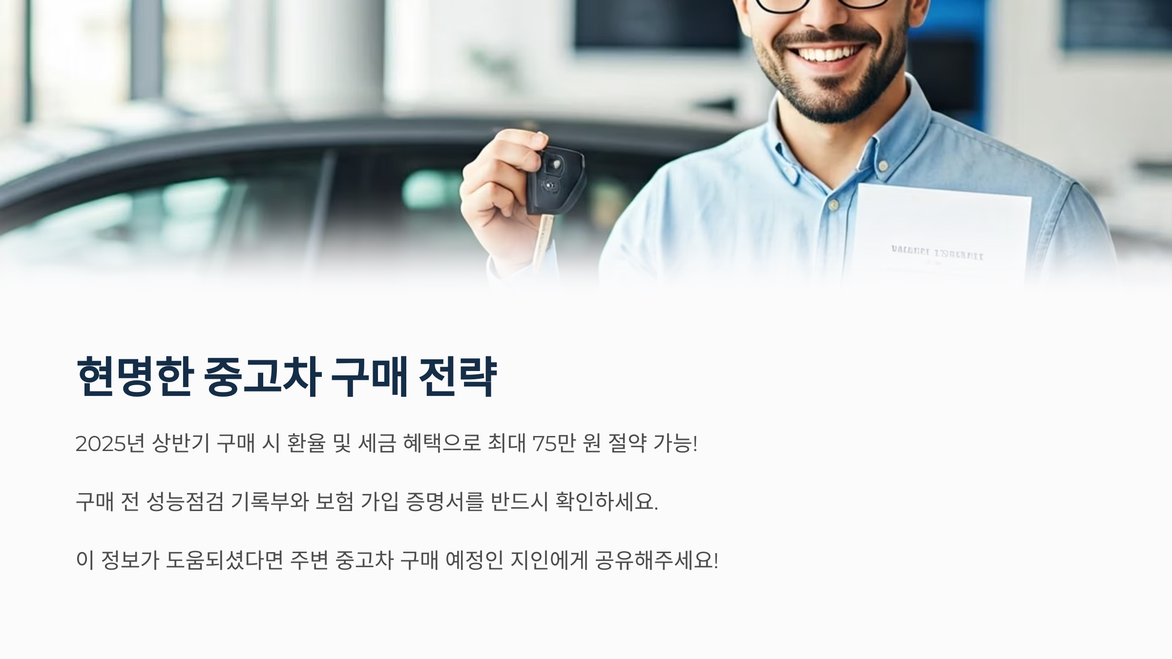 2025년 상반기에는 의무화 전 환율 및 세금 혜택을 활용하는 것이 유리합니다. 특히, 자동차 개별소비세 인하로 최대 75만 원까지 절약할 수 있습니다. 구매 전 성능점검 기록부와 보험 가입 증명서를 반드시 확인하세요.