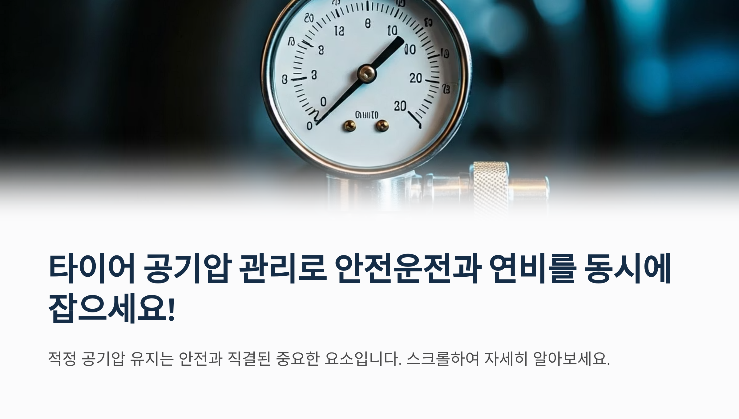 안녕하세요, 운전자 여러분! 오늘은 차량 관리의 기본이자 안전운전의 핵심인 타이어 공기압 관리에 대해 알아보겠습니다. 타이어 공기압은 단순한 숫자가 아니라, 여러분의 안전과 직결된 중요한 요소입니다. 지금부터 함께 알아보시죠!