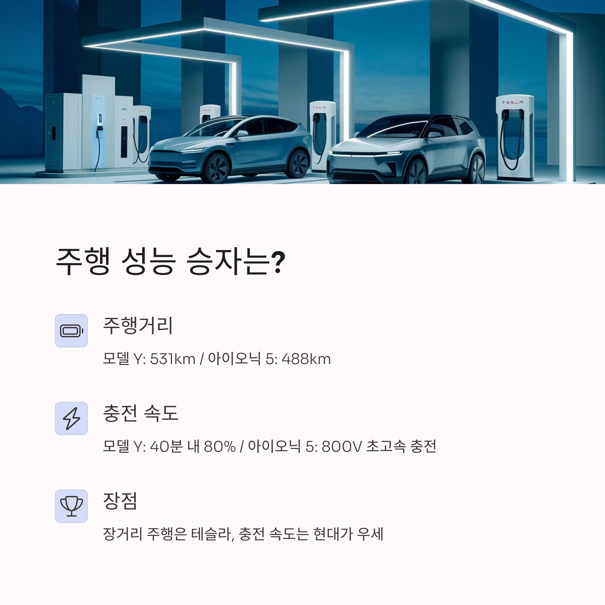 장거리 여행을 계획 중인 소비자는 테슬라의 충전 네트워크와 주행거리가 유리할 수 있지만, 가격을 중요시한다면 아이오닉 5도 좋은 선택입니다.