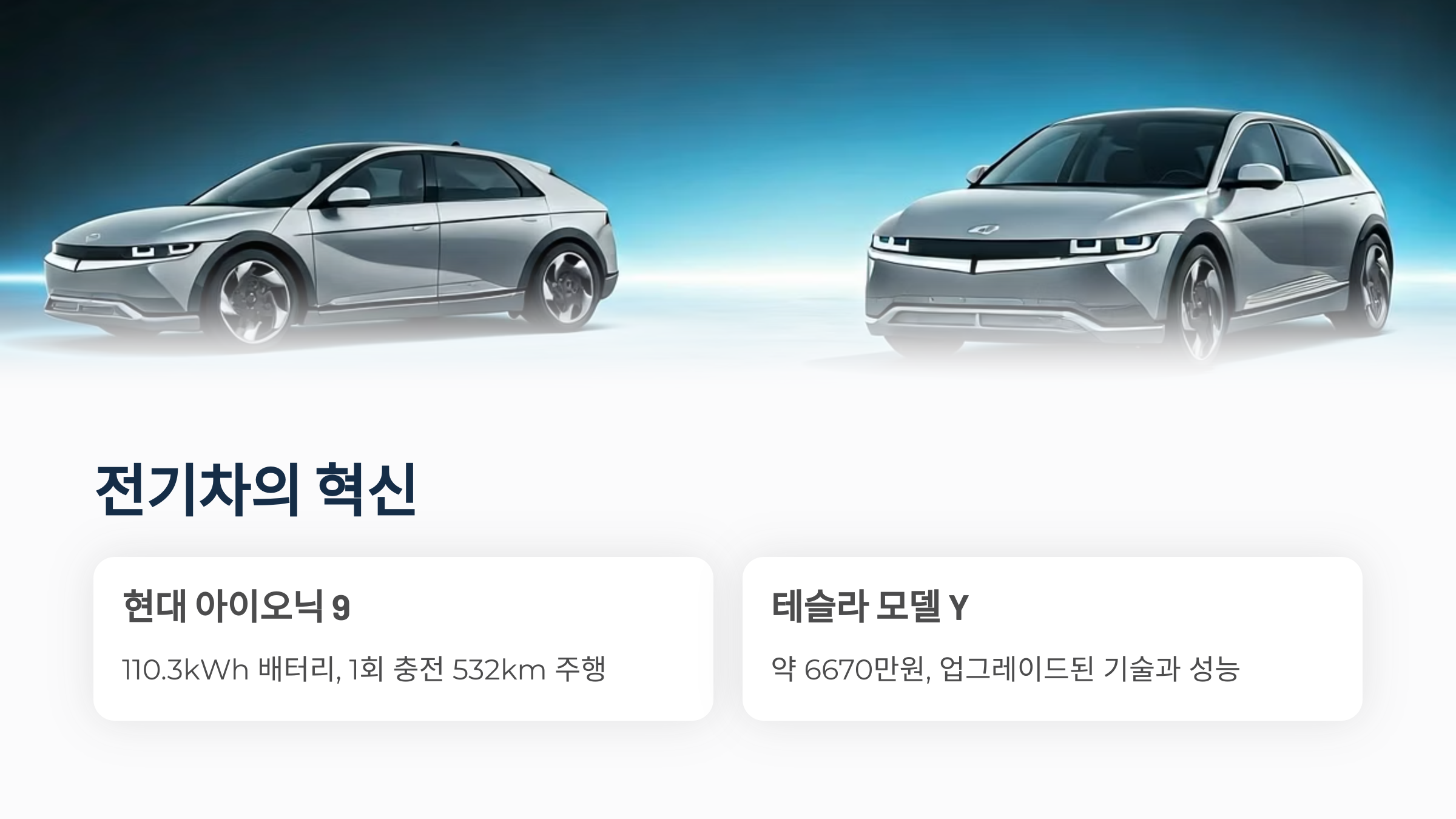 전기차의 효율성, 넓은 실내 공간, 고급스러운 디자인 등 각 모델의 특징을 잘 비교하여 자신에게 가장 적합한 SUV를 선택하시길 바랍니다.